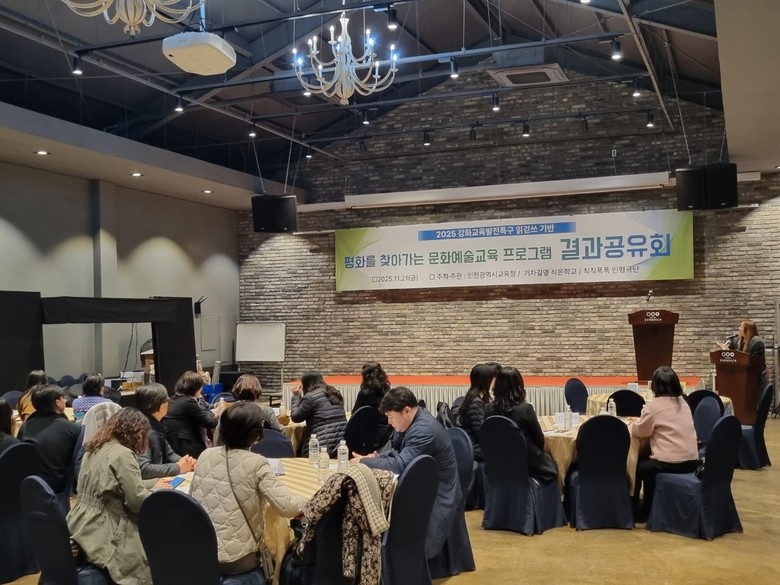 [인천 세계타임즈=심하린 기자] 인천광역시교육청(교육감 도성훈)은 21일 강화 지역 유·초·중·고 학생 및 교직원 100여 명이 참여한 가운데 2025 강화교육발전특구 ‘평화를 찾아가는 문화예술교육 프로그램’ 결과 공유회를 개최했다.