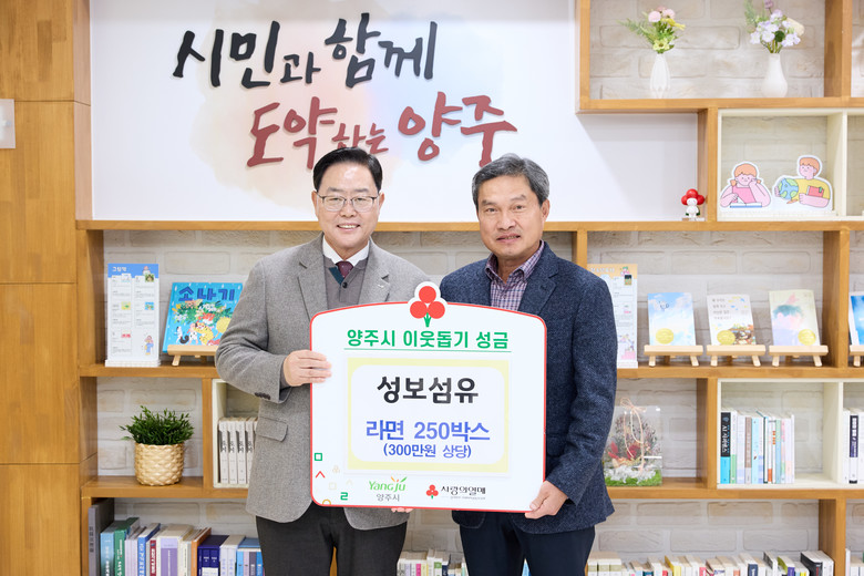 이번 기탁에는 양주검준패션칼라사업협동조합(조합장 유인재)과 양주패션칼라산업단지입주기업체협의회(이사 유인재)가 각각 성금 500만 원씩 총 1,000만 원을 기부했으며, 대광프린트무역㈜(대표 유인재)와 성보섬유(대표 김형식)는 라면 각 250박스씩 총 500박스(600만 원 상당)를 전달하며 나눔에 동참했다.