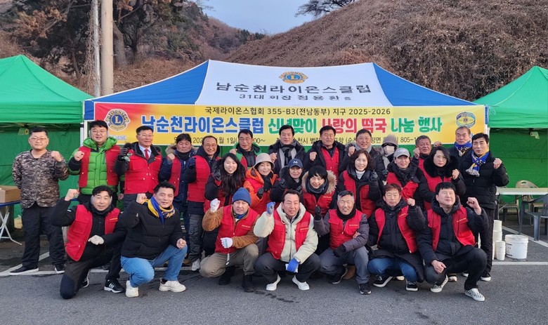 [순천시 세계타임즈=우덕현 기자] 남순천라이온스클럽은 2026년 병오년 새해 첫날 해돋이 명소로 알려진 별량면 화포해변(화포항) 일대에서 관광객 3,000여 명에게 사랑의 떡국 나눔 행사를 성황리에 마무리했다고 2일 밝혔다.