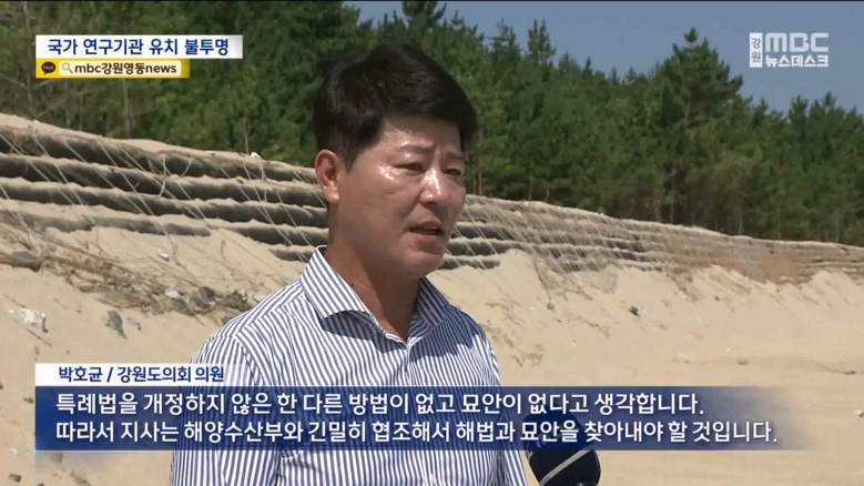 박호균 의원은 관련 법령 검토, 도내외 여건 분석, 부처 간 의사소통 등에 문제가 있었음을 5분 자유발언과 도정질문 등 의정활동을 통해 꾸준히 지적해 왔으며, 이번 인터뷰에서도 ‘해양수산부의 협조 또는 강원특별법 특례 신설 외에는 다른 방법이 없다. 도지사와 해양수산부가 긴밀히 협조해서 해법과 묘안을 찾아내야 한다’라며, 건립 지연 문제 해결을 위한 대책을 촉구했다.