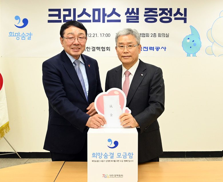 [세계타임즈 = 이영진 기자] 한국전력(이하 한전) 김동철 사장은 12월 21일(목) 서초구 대한결핵협회(회장 신민석) 회의실에서 임직원이 모금한 성금을 ‘2023년 크리스마스씰 모금 캠페인’ 참여의 일환으로 대한결핵협회에 전달하였다.