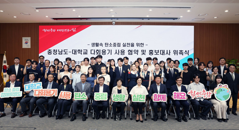 도는 19일 도청 대회의실에서 전형식 정무부지사를 비롯해 대학 총장단, 학생 홍보대사 및 관계자 등 150여 명이 참석한 가운데 ‘대학교 다회용기 사용 협약 및 홍보대사 위촉식’을 개최했다고 밝혔다.