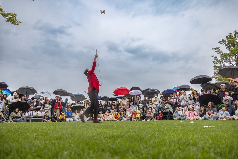 | ▲ 지난 5월 순천만국가정원 어린이날 행사에서 관람객들이 마술쇼를 관람하고 있다 |