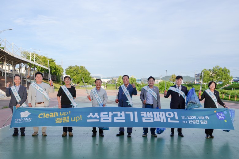 [안성시 세계타임즈=송민수 기자] 안성시의회(의장 안정열)는 22일 오후 전 의원 및 직원들이 함께하는 『clean up! 청렴 up! 쓰담걷기 캠페인』을 안성천 일대에서 실시했다고 밝혔다.