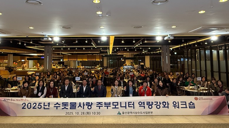 [세계타임즈=울산 이호근 기자] 울산시상수도사업본부는 28일 오전 10시 울산시티컨벤션에서 ‘2025년 수돗물사랑 주부감시자(모니터) 역량강화 연찬회(워크숍)’를 개최한다고 밝혔다.