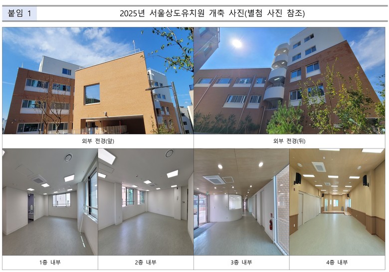 새롭게 문을 여는 서울상도유치원은 기존보다 1학급 늘어난 총 8학급(특수 1학급 포함, 정원 118명)으로 운영되며, 증가하는 지역 유아 교육 수요를 충족할 수 있게 됐다.