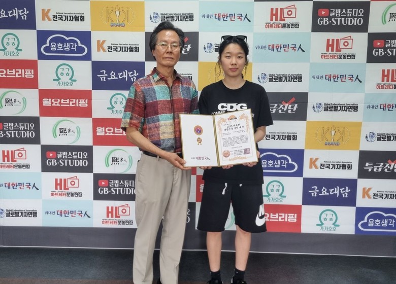 ▲위대한 대한민국 국민대상 조직위원회 유동열 위원장과 박도연 학생