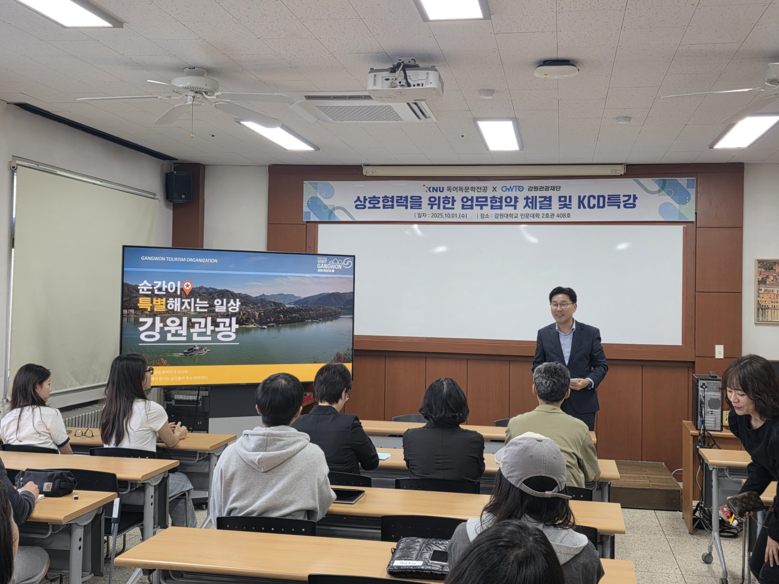 최성현 강원관광재단 대표이사는 “이번 협약은 글로벌 시장, 특히 독일어권과 유럽 시장에서 강원 관광의 경쟁력을 높이는 중요한 계기가 될 것”이라며, “독어독문학전공과의 긴밀한 협력을 통해 미래 관광 인재를 양성하고 강원의 국제적 위상을 제고해 나가겠다”고 말했다.