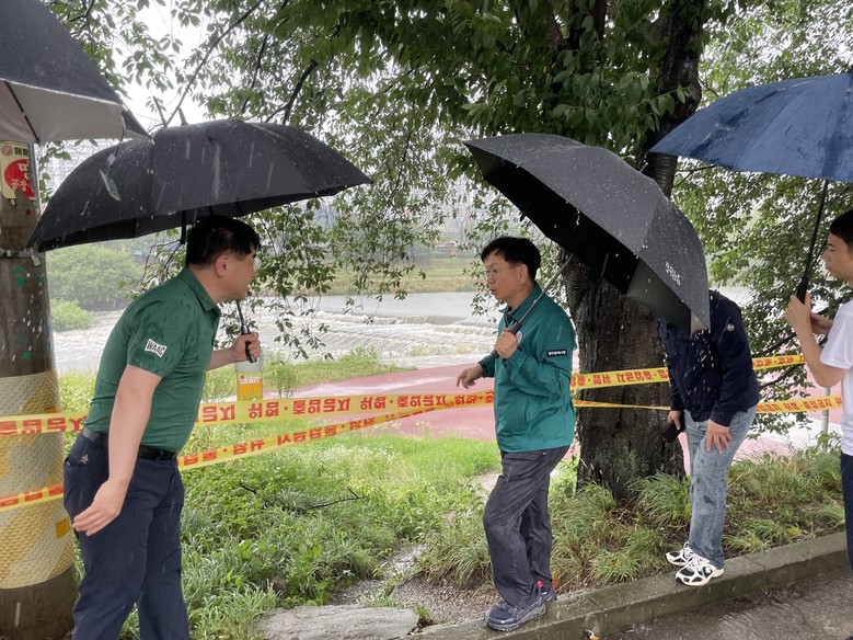[광주 세계타임즈=손권일 기자] 광주광역시(시장 강기정)는 29일 광주지역 호우주의보 발표에 따라 재난안전대책본부 비상 1단계를 가동한 가운데 고광완 행정부시장이 광주천과 풍영정천 일대 하천변 산책로와 징검다리 통제상황을 현장 점검했다.