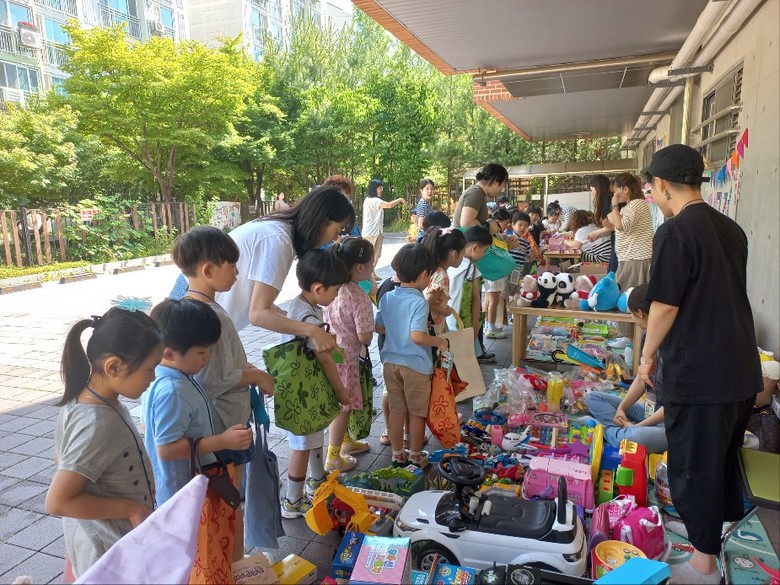 ◦ 쓰지 않는 장난감, 작아진 옷과 신발 등을 모아 친구와 동생들에게 나누고 필요한 물건도 삽니다