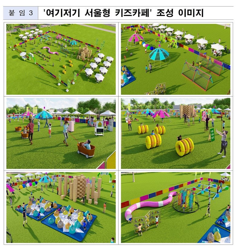규모는 최대 500㎡로, 기존 실내형 서울형 키즈카페(평균 280㎡)보다 넓어 가족 단위 방문객들이 쾌적하게 이용할 수 있으며, 신체활동이 가능한 가변형 놀이기구를 배치해 실내형 키즈카페와는 또다른 재미를 선사한다. 또한, 아이들을 위한 놀이공간뿐 아니라 양육자가 쉴 수 있는 휴식공간도 별도로 마련할 예정이다.