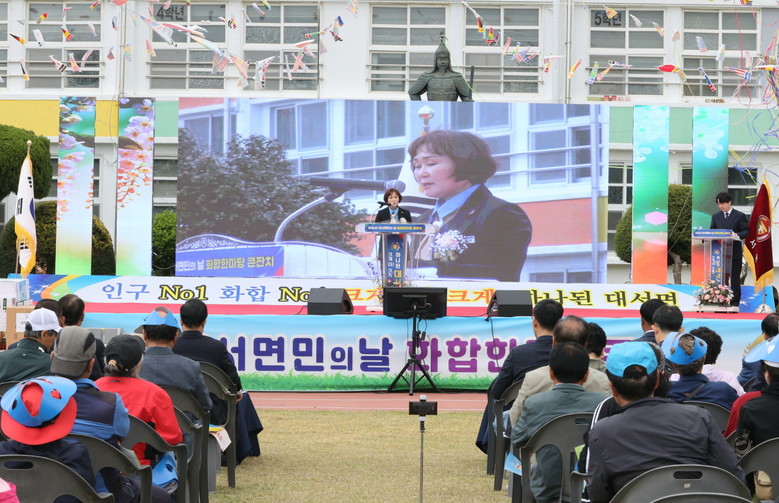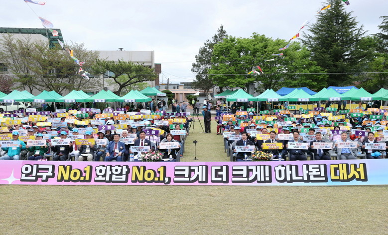 이어 진행된 화합 퍼포먼스에서는 ‘인구 No.1 화합 No.1, 크게 더 크게! 하나된 대서’라는 구호와 함께 면민들이 인구 늘리기와 지역 화합에 대한 의지를 함께 다졌다.