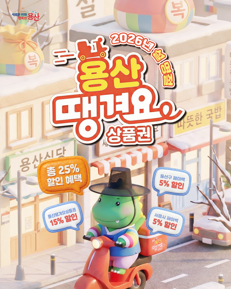 서울시 배달전용상품권인 ‘용산땡겨요상품권’ 5억 원은 2월 3일 오전 10시에 발행된다. ‘서울페이플러스(서울pay+)’ 앱에서 구매할 수 있으며, 용산구 내 ‘서울배달+ 땡겨요’ 가맹점에서 사용 가능하다. 15%의 높은 할인율이 적용되며 1인당 월 구매 한도는 20만 원, 보유 한도는 100만 원이다.