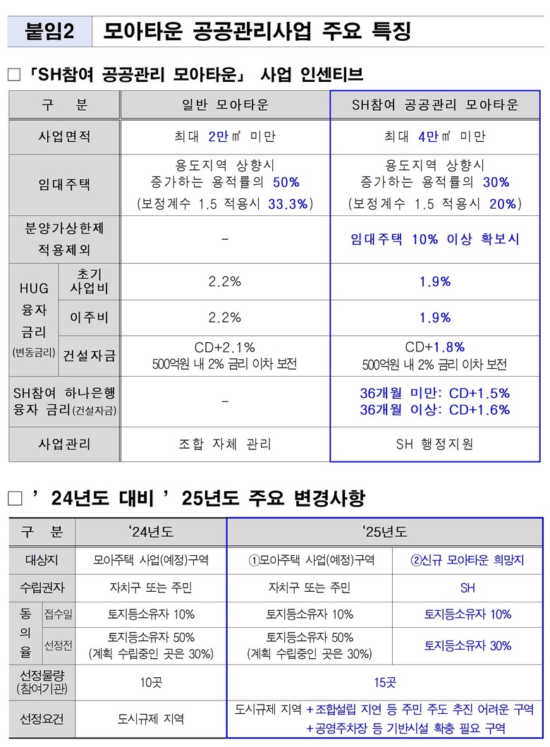 - ‘공공제안형 모아타운 희망지’ 신설로 새로 모아타운 희망하는 지역도 공모 기회