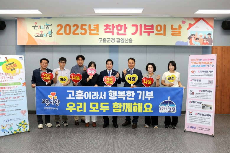 [고흥군 세계타임즈=우덕현 기자] 고흥군(군수 공영민)은 지난 9월 30일 군청 팔영산홀에서 ‘2025년 착한 기부의 날’ 행사를 개최하고, 고향사랑기부제에 참여한 기부자들과 함께 성과를 공유하며 감사의 마음을 전했다.