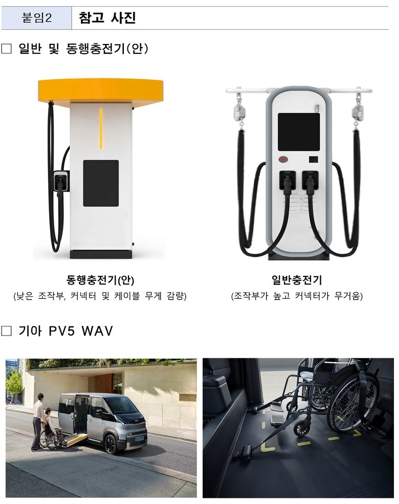 서울시는 휠체어 이용자가 탑승 가능한 전기차(PV5 WAV)를 구매한 시설이나 가구(공동주택 등)도 동행충전기 설치 대상으로 추가 지원한다. 기아는 서울 소재 교통약자 이용 시설 및 장애인.장애인 가족이 해당차량(PV5 WAV)을 구매할 경우, 최종 차량 가격에서 100만 원(옵션 및 충전비 지원 포함)의 특별 할인 혜택을 제공한다.
