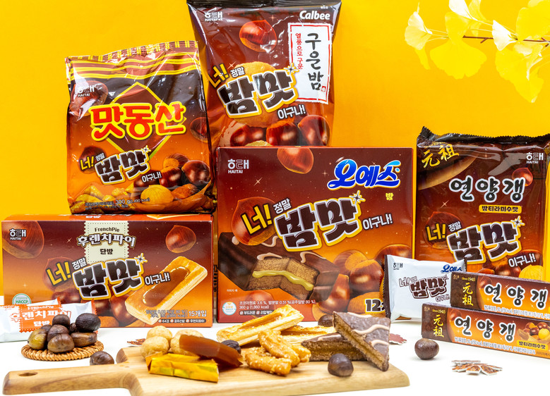 이번 가을에 맛보는 제철 에디션의 주인공은 ▲맛동산 ▲오예스 ▲후렌치파이 ▲구운밤 ▲연양갱이다. 누구나 좋아는 과자에 햇밤 맛을 담아 가을 느낌을 듬뿍 살렸다.