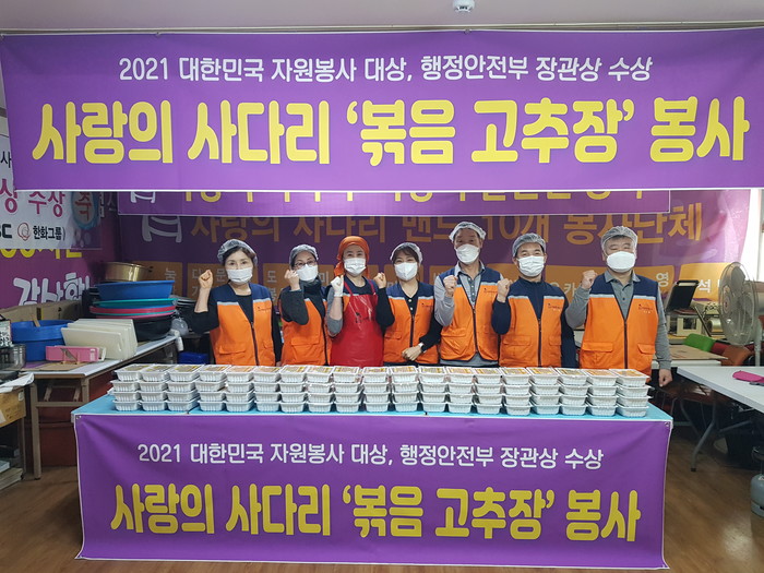 이날 봉사에는 유희자 단장을 비롯해서 고대석 김호현 김호찬 박원홍 오명옥 전숙자 회원들이 대덕구 중리동에 위치한 사랑의 사다리 밴드 사무실에서 볶음 고추장을 만든 후 열매, 해오름, 행복이음, 로뎀나무, 포도나무 엘림특수교육원 6곳에 20개씩 전달을 하였다.