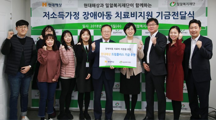 [세계타임즈 이영진 기자] 현대해상은 지난 5일 서울 강남구 수서동에 위치한 밀알복지재단에서 장애 아동 치료비를 위한 성금 3천만원을 전달했다고 6일 밝혔다.