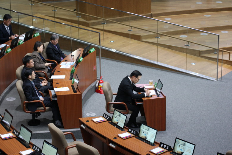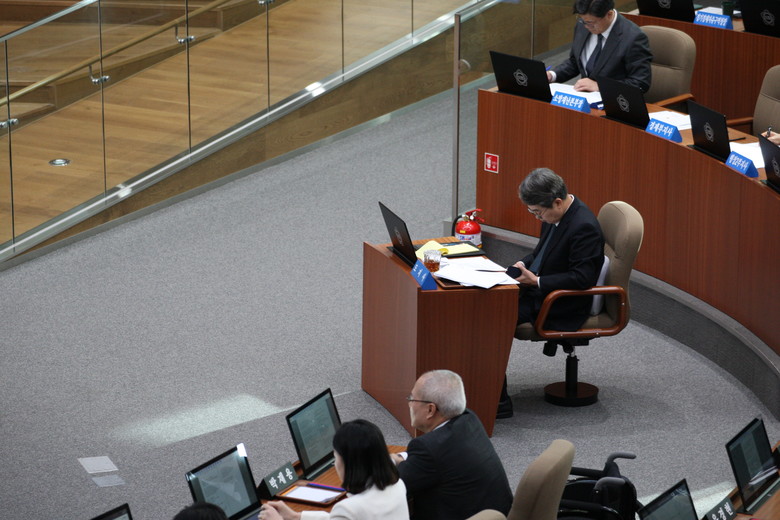 ▲경기도의회 제387회 정례회 제5차 본회의에 참석한 임태희 경기도교육감.
