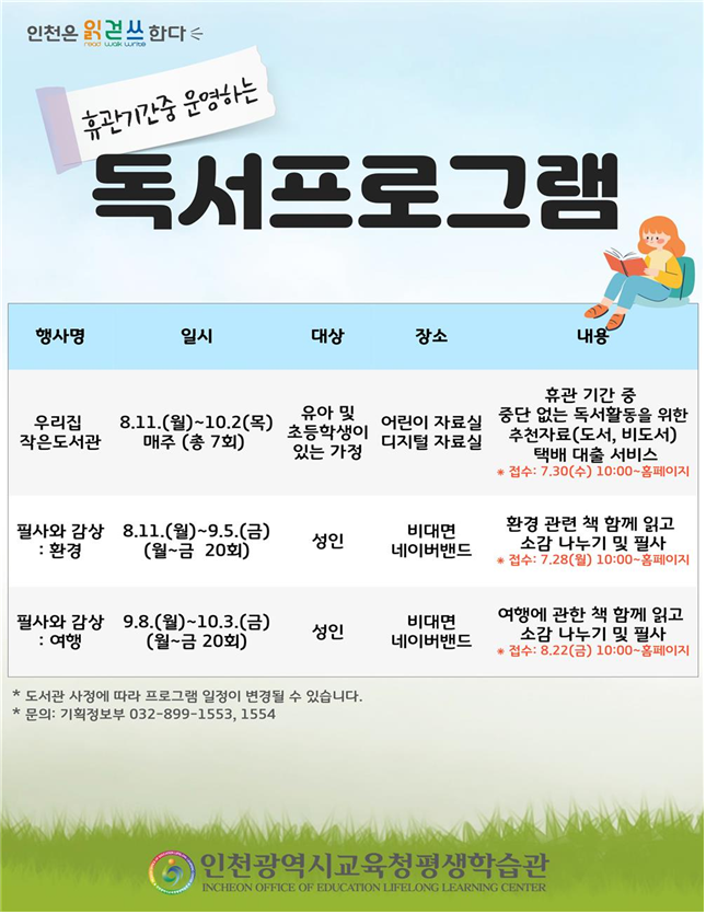자세한 사항은 평생학습관 기획정보부 정보팀(☎032-899-1553~4)으로 문의하면 된다.