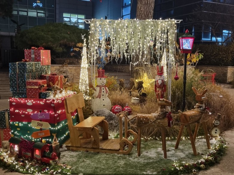먼저, 은평구청 앞 정원에는 은평목공소에서 직접 제작한 루돌프 썰매가 선물을 가득 싣고 있는 모습이 전시돼 아이들은 물론 어른들까지 발길을 멈추게 하고 있다.