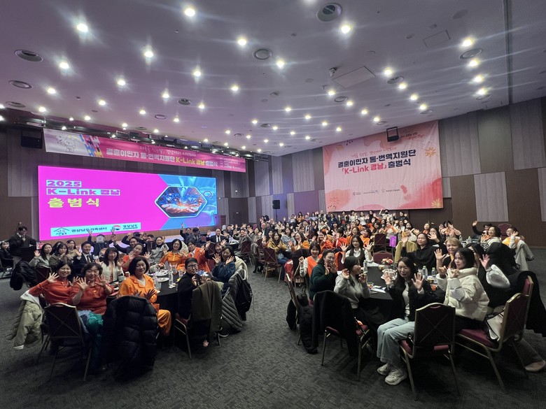 - 도내 공공서비스 자원 확충 및 경남의 경제 활성화 기여 기대 [세계타임즈=경남 최성룡 기자] 경상남도와 경상남도가족센터는 9일 오전 10시 창원컨벤션센터에서 결혼이민자 통·번역지원단 「K-Link 경남」 출범식을 개최했다고 밝혔다.