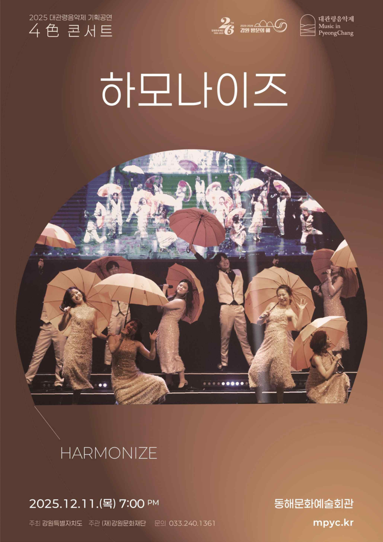 영화음악, 케이팝(K-Pop), 뮤지컬, 재즈, 클래식, 퓨전 국악 등 폭넓은 영역을 아우르는 하모나이즈는 이번 <4色 콘서트> 공연에서 팝(POP), 영화음악, 뮤지컬, 연말 분위기를 더하는 크리스마스 음악까지 화려한 무대를 선보인다.