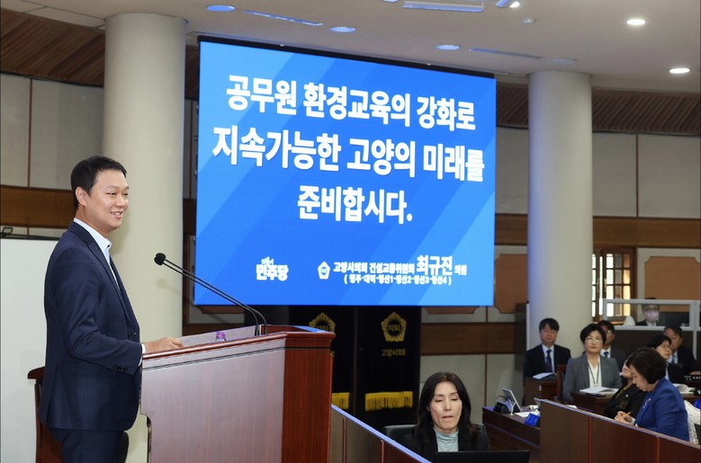 [고양시 세계타임즈=송민수 기자] 고양특례시의회 최규진 의원(행주, 대덕, 행신1·2·3·4)은 10월 21일 시의회 본회의장에서 열린 제298회 임시회 제1차 본회의 5분 자유발언을 통해, 지속 가능한 고양의 미래를 위해 공무원 환경교육 강화의 필요성을 강조했다.
