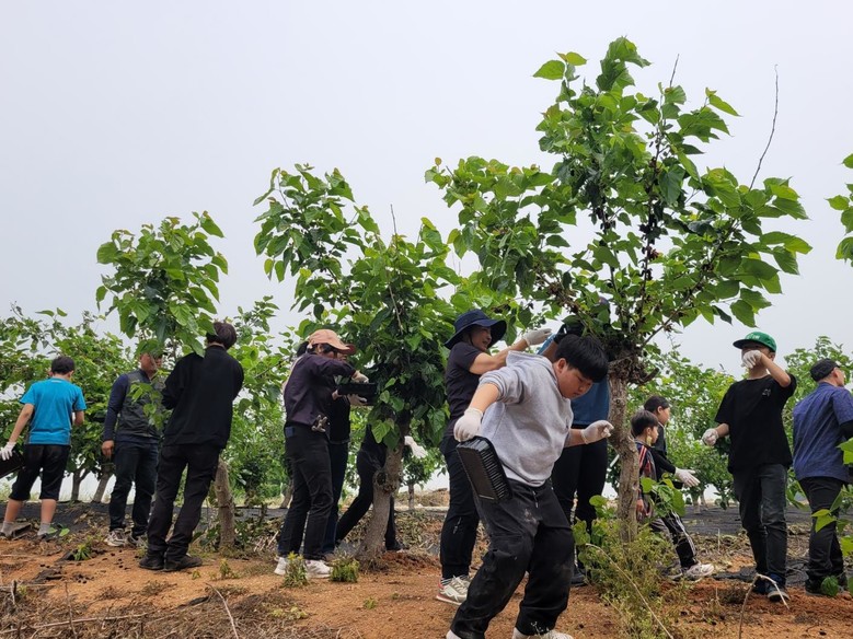 이날 행사에는 다문화가정 및 일반가정 자녀를 둔 가족 25명이 참가해 호박심기, 오디따기, 동네 환경정화 등 다양한 봉사활동을 펼쳤다.
