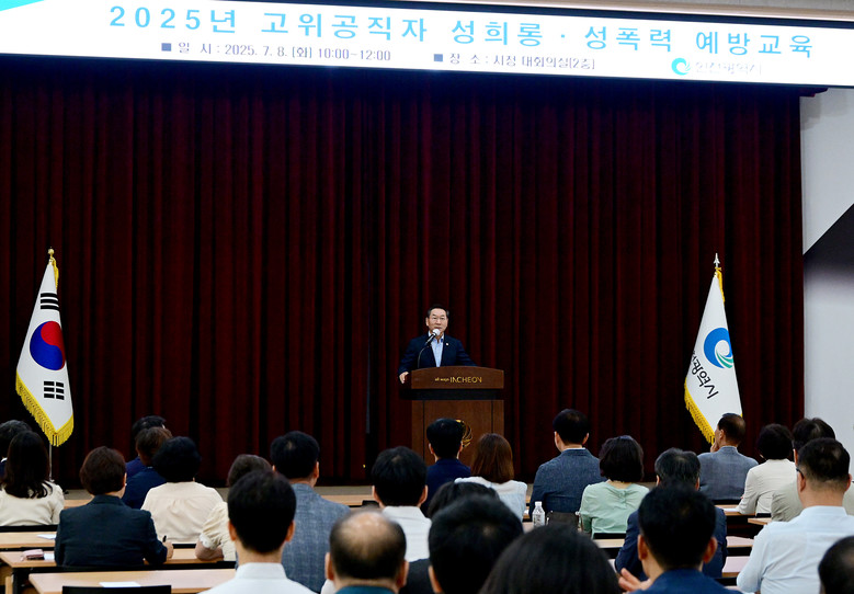 [인천 세계타임즈=심하린 기자] 인천광역시(시장 유정복)는 7월 8일 시청 대회의실에서 유정복 시장을 비롯한 본청 및 소속기관의 고위공직자를 대상으로 ‘2025년 고위공직자 성희롱·성폭력 예방교육’을 실시했다고 밝혔다.