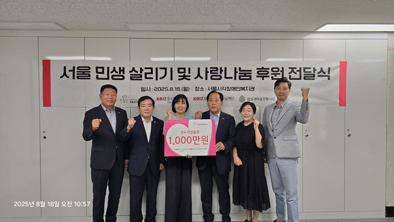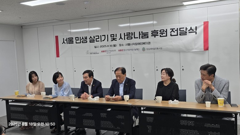 이날 전달식에는 임춘대 기획경제위원장을 비롯해 박종석 중소기업중앙회 서울중소기업회장, 정경은 서울지역본부장 등 중소기업계 주요 인사와 서혜미 서울시각장애인복지관장, 최재옥 새마을전통시장상인회장 등 지원기관 및 전통시장 관계자들이 참석했다.