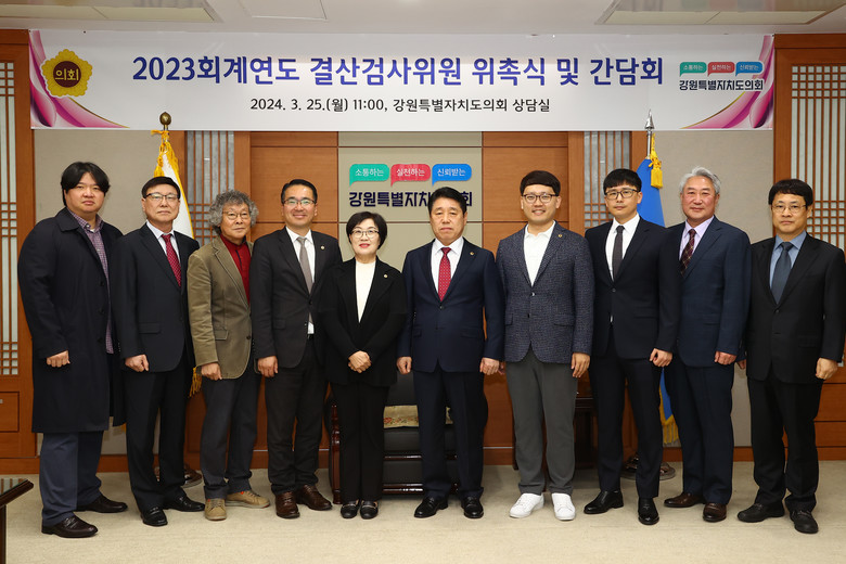 [강원도 세계타임즈=김민석 기자] 강원특별자치도의회(의장 권혁열)는 3월 25일 도의회 상담실에서 2023회계연도 강원특별자치도 및 도교육청의 결산검사를 위하여 9명의 결산검사위원을 위촉한다.