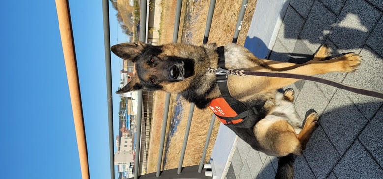 119구조견 ‘투리’(저먼 셰퍼드, 8세, 수컷)는 담당 핸들러 김승환 대원과 지난 2022년 12월부터 호흡을 맞춰 출동 임무를 수행해왔다.