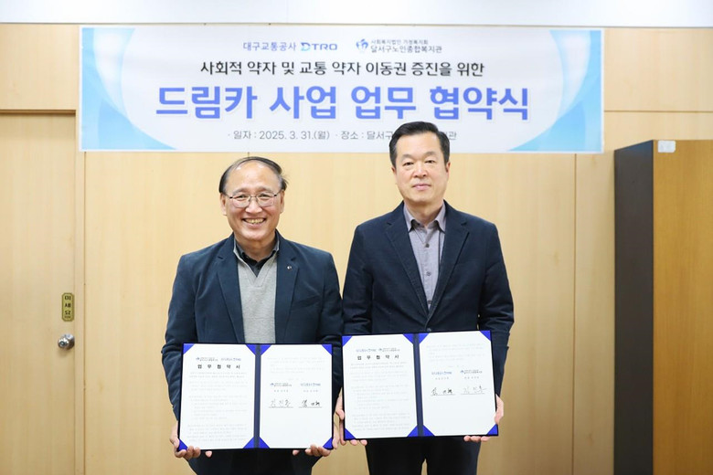 올해는 달서구노인종합복지관과 추가로 업무협약을 체결하고, 4월부터 시행한다. 이는 노인과 교통 취약계층의 사회 참여 및 복지 증진을 위함이다.