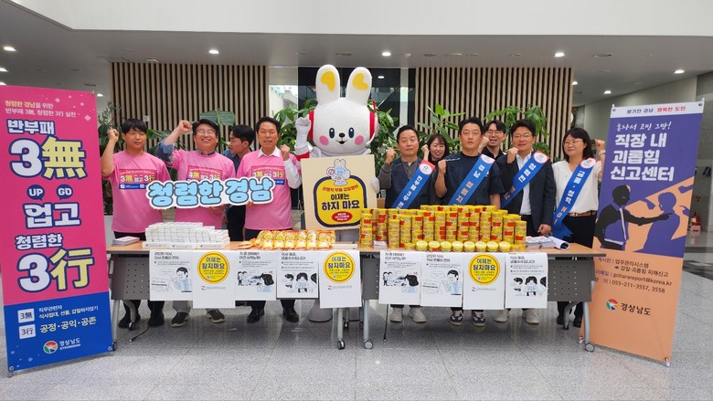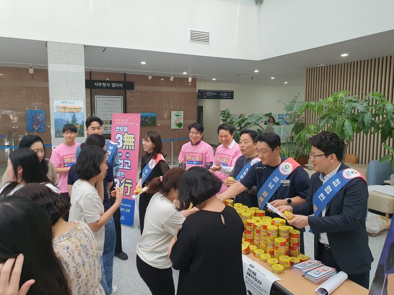 이어 열린 ‘청렴문화 확산 캠페인’에서는 ‘3무(無) 업고 3행(行)’ 실천과 함께 “이제는 하지마요·참지마요”라는 문구를 통해 관행적 부패와 갑질 근절의 필요성을 알렸다. 특히 ‘하지마요(마요네즈)’, ‘참지마요(참치캔)’ 등 재치 있는 문구의 홍보물품을 나누어 주며 신고·상담 제도에 대한 직원들의 관심을 유도했다.
