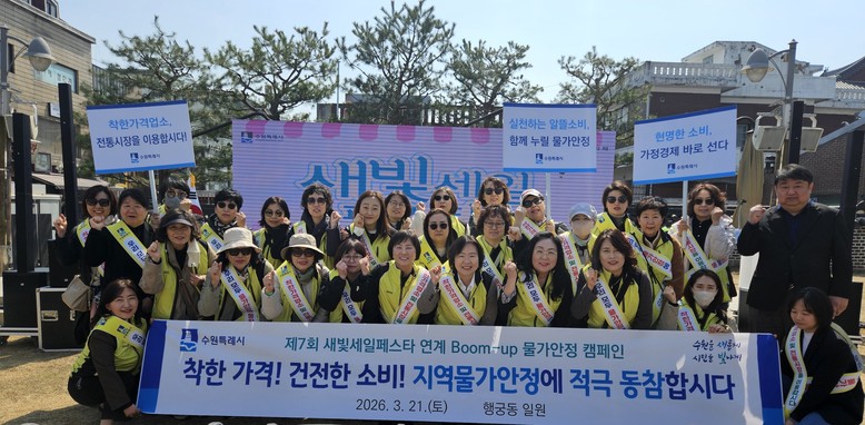 [수원시 세계타임즈=송민수 기자] 수원특례시(시장 이재준)는 제7회 새빛세일페스타 수원(3월 20일~29일)과 연계해 전통시장과 착한가격업소 이용을 장려하는 ‘물가안정 릴레이 캠페인’을 전개했다.