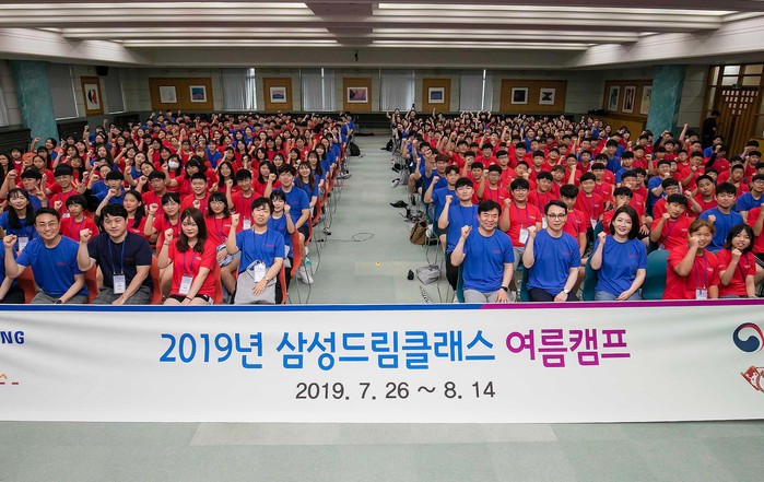 [세계타임즈 이영진 기자]삼성전자는 26일부터 다음달 14일까지 전국 5개 대학에서 읍·면·도서 지역 691개 중학교의 학생 1,543명이 참가하는 '2019 삼성드림클래스 여름캠프'를 운영한다.
