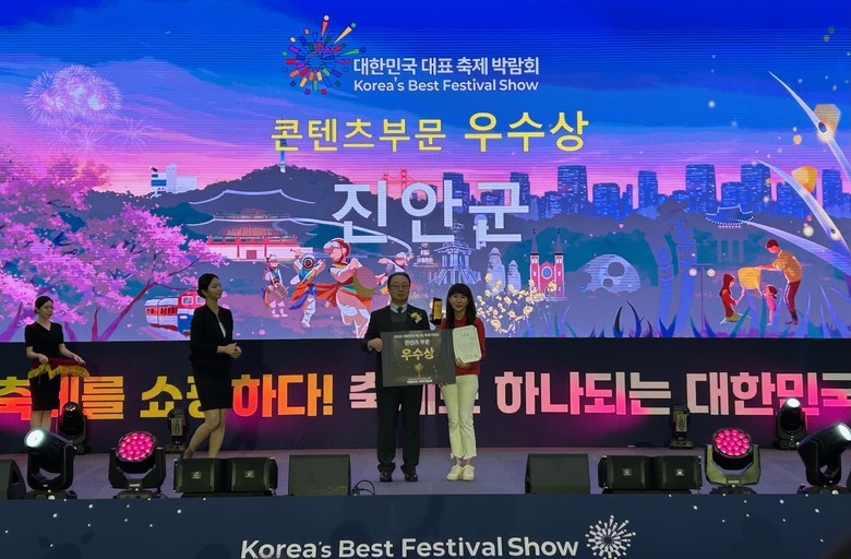 [세계타임즈=진안군 김서주 기자] 진안군은 지난 21일부터 23일까지 부산 벡스코에서 열린 ‘대한민국 대표 축제 박람회’에 참가해 콘텐츠 부문 ‘우수상’을 수상했다.