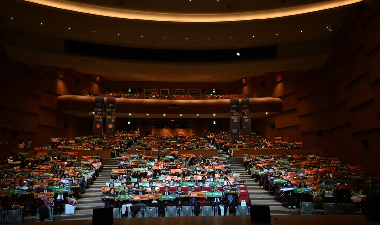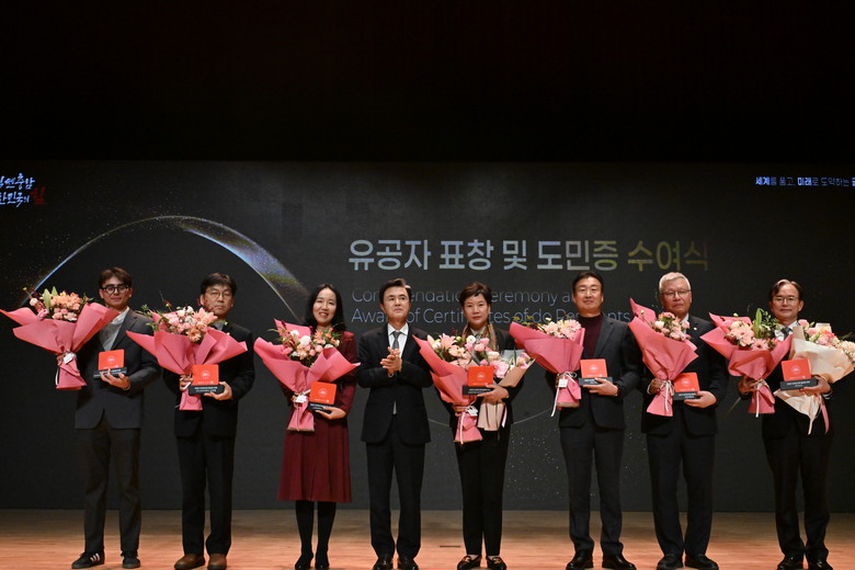 김 지사, 도내 외국인 근로자와 유학생, 기업과 대학 대표 등 700여 명이 참석한 가운데 연 이날 행사는 비전 영상 상영, 김 지사 비전 선포, 퍼포먼스, 유공자 표창 및 도민증 수여 등의 순으로 진행했다.