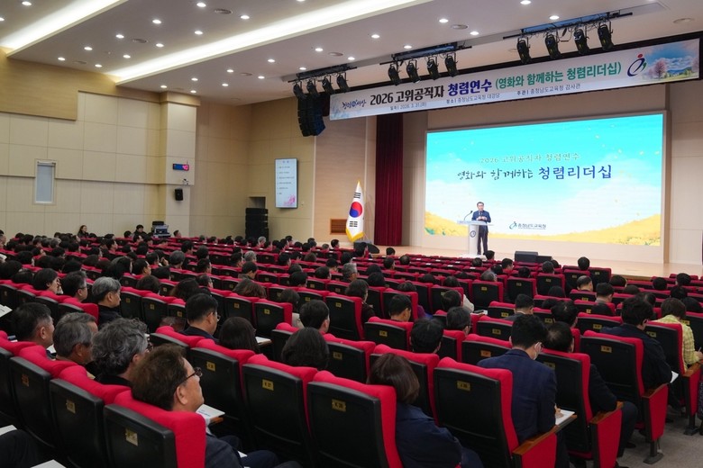 [충남 세계타임즈=이현진 기자] 충남교육청(교육감 김지철)은 소통과 공감을 통해 청렴한 조직문화 확산을 추구하고 있으며, 영화와 함께하는 고위공직자 청렴 연수를 개최하고 2026년 청렴도 향상을 위한 출발을 알렸다.