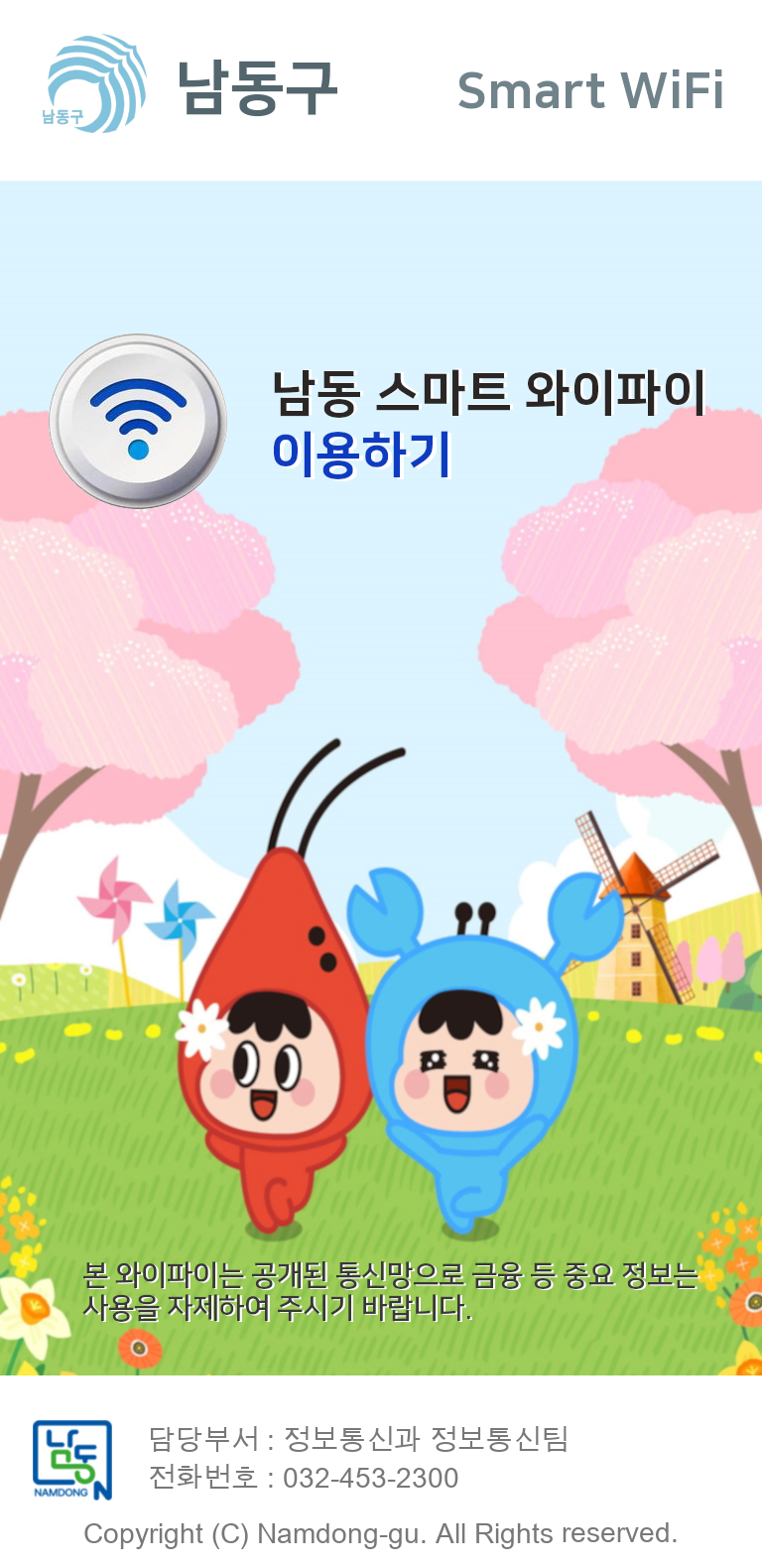 박종효 남동구청장은 “무료 공공와이파이 확대 구축은 정보 소외 계층의 디지털 격차를 해소하고 구민들의 가계 통신비 부담을 더는 실질적인 통신 복지 서비스가 될 것”이라며 “앞으로도 구민들이 체감할 수 있는 스마트 도시 구현을 위해 최선을 다하겠다.”라고 전했다.