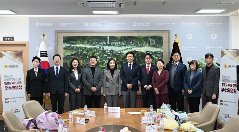 [서울 세계타임즈=이장성 기자] 서울특별시의회 최호정 의장은 12월 16일(수) 의장접견실에서 ‘2025년 서울특별시의회 전문도서관 이용 우수의원’으로 15명을 선정하여 감사장을 시상했다고 밝혔다.