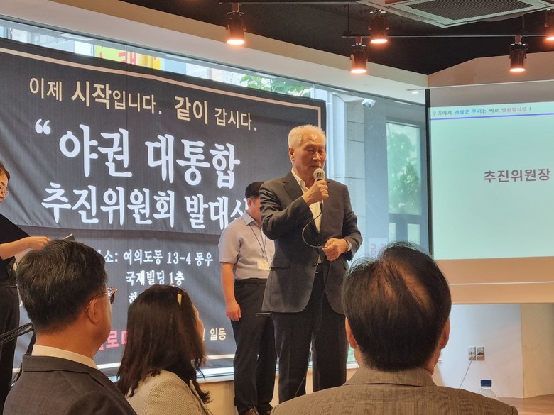 [세계타임즈 백진욱 기자] 4개당(충청의미래당, 신한반도평화체제당, 한국국민당, 직능자영업당)이 <내일로 미래로>라는 당명으로 통합절차를 진행하고 있는 가운데 9월 9일 오후 2시 여의도에서 야권대통합 추진위원회 발대식을 거행하였다.