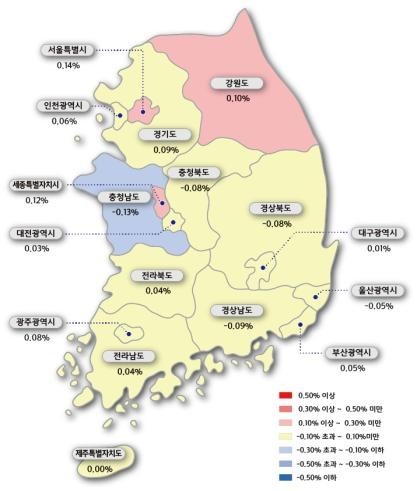 수도권은 0.04% 상승, 지방은 0.03% 하락했다.