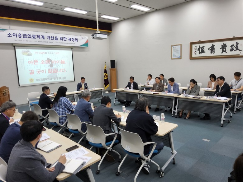 [부산 세계타임즈=이용우 기자] 부산광역시의회 의원연구단체인 ‘부산역’(부산시민이 행복할 수 있도록 역할을 하는 연구모임, 대표 성창용 의원(사하구3, 국민의 힘))이 주최하는 「소아응급의료체계 개선을 위한 공청회」가 5월 4일(목) 14시 부산시의회 2층 중회의실에서 개최되었다.