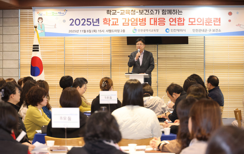[인천 세계타임즈=심하린 기자] 인천광역시교육청(교육감 도성훈)은 6일, 시·군·구 보건소 역학조사관, 감염병 전문가, 학교 감염병 관리조직 등 100여 명이 참여한 ‘학교 감염병 대응 연합 모의훈련’을 실시했다.