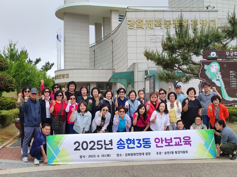 [동구 세계타임즈=심하린 기자] 인천 동구 송현3동(동장 장미애)은 지난 10일 송현3동 통장 자율회(회장 김명숙) 회원·주민 등 33명과 함께 평화전망대 일원을 견학하는 안보교육을 시행했다고 밝혔다.