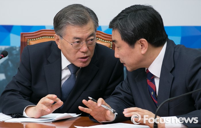 | △ 문재인(왼쪽) 새정치민주연합 대표와 이종걸 원내대표가 2일 오전 서울 여의도 국회에서 열린 최고위원회의에 참석해 대화하고 있다. <사진제공=포커스뉴스> |