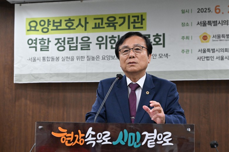 강석주 위원장은 “요양보호사는 통합돌봄 현장의 중심에 있는 핵심 인력이며, 이들의 전문성 확보 없이는 돌봄체계가 작동할 수 없다”며 “교육기관의 질적 향상과 체계적 관리가 절실한 시점”이라고 강조했다. 이어 “이번 토론회가 서울형 통합돌봄 시스템 구축을 위한 실행 기반 마련에 기여하길 기대한다”고 말했다.